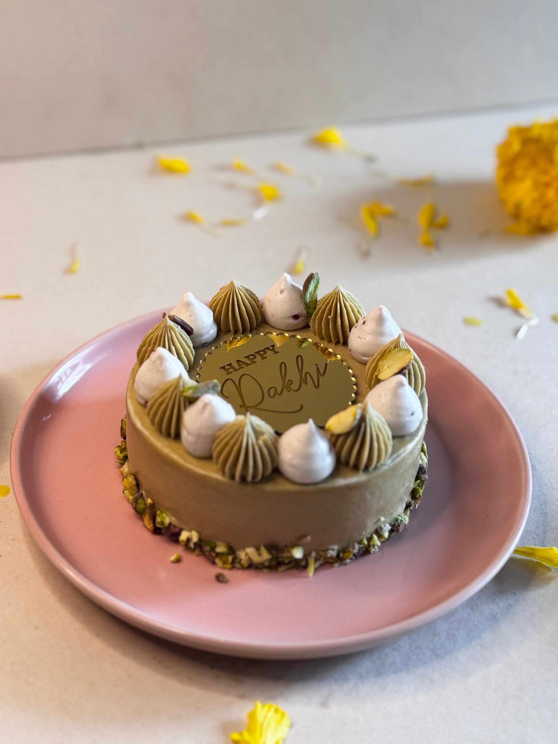 Pistachio sponge layered with silky pistachio mousse & house made raspberry compote.