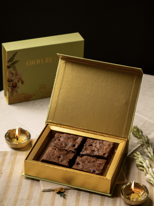Rich, fudgy brownies baked to perfection—each bite is pure chocolate bliss. A festive box to share and savour, best enjoyed warm for that melt-in-the-mouth magic.
